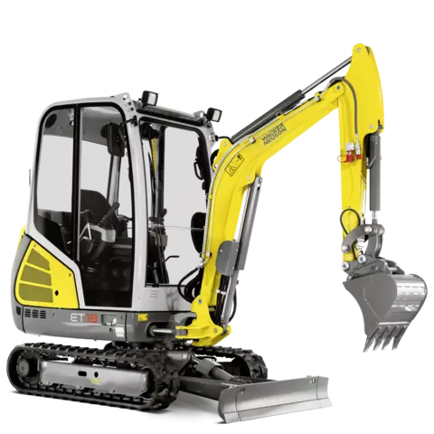 Med gravemaskinen ET18 setter Wacker Neuson nye standarder i 1,7- til 2,4-tonnsklassen. Kombinasjonen av velkjente elementer og intelligente nyvinninger gir bedre ytelse og effektivitet. Gjennomtenkte egenskaper, som stor førerhytte og todelt frontrutemekanisme, gir dessuten høyere komfort for operatøren.