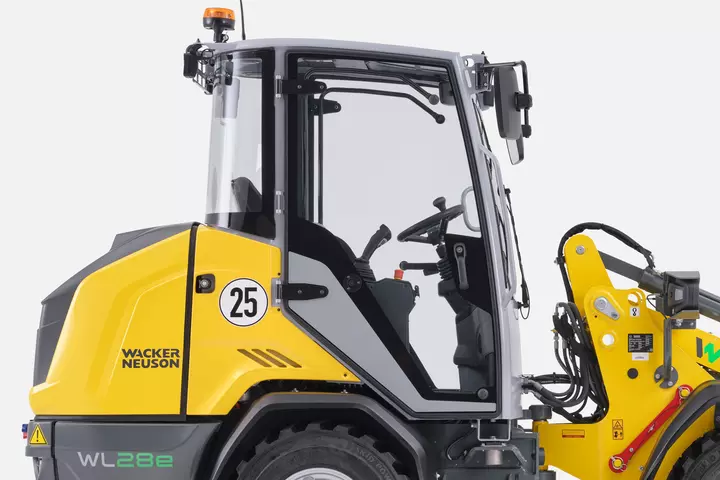 Elektrisk, effektiv, miljøvennlig. Ytelsesegenskapene til den elektrisk drevne hjullasteren WL28e tilsvarer en konvensjonell dieseldrevet maskin. Det integrerte 96 volt litiumionbatteriet er tilgjengelig i tre ytelsesnivåer slik at kjøre- og ladetider kan tilpasses optimalt til arbeidskravene. Med forskjellige ladekabler og ladeplugger er det mulig å lade maskinen på en fleksibel måte. WL28e arbeider fullstendig utslippsfritt og med betydelig lavere støyutslipp. For brukeren betyr dette mer fleksibilitet i bruk, miljøvern og betydelige besparelser i driftskostnadene. Den lavt designede forvognen sørger for perfekt oversikt og høy tipplast. Den mestrer paller med brosteiner eller annet transportgods inntil 1,6 t helt problemfritt.